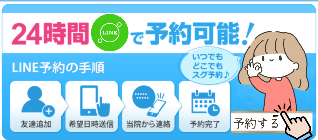 当院は完全予約制のため、ご予約に関しましては電話やメール、LINEにて承っております。